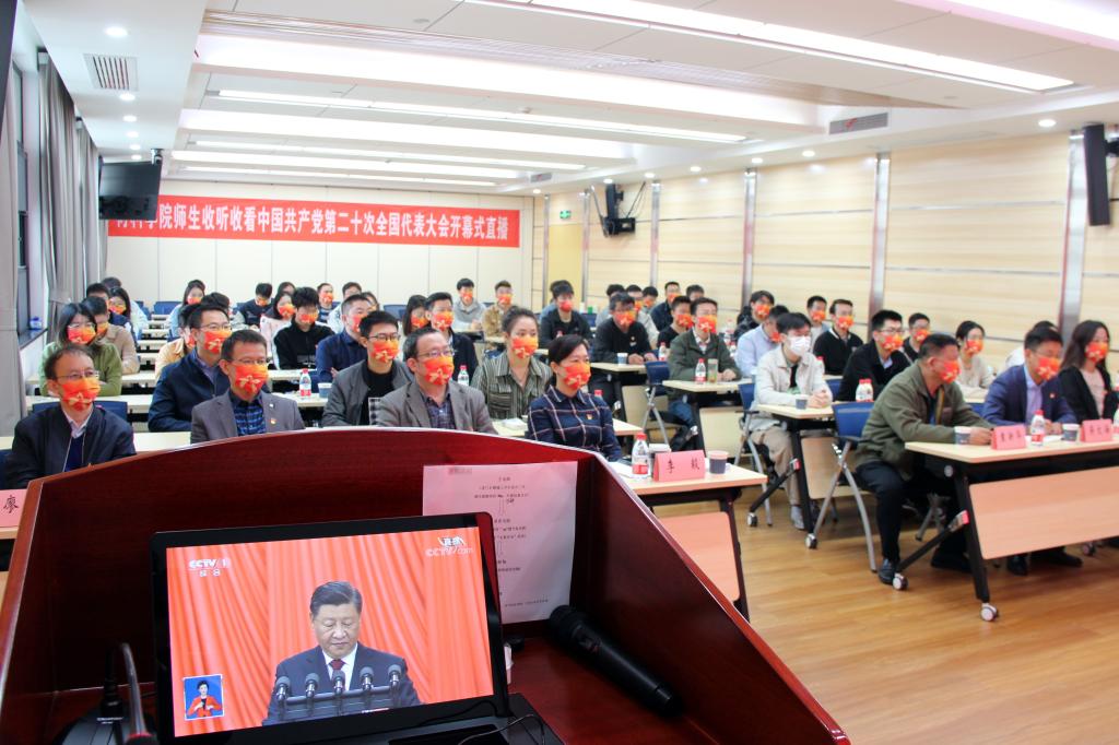 第一时间组织学院党委委员、各教工党支部、学生党支部代表在先进制造大楼A308集中收看了党的二十大直播,学院广大教职员工也通过多种方式收看会议,认真学习大会报告。