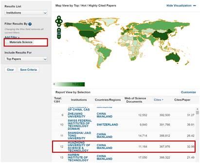 全球共有1391个机构进入材料科学ESI 排名,我校排第12名,本期共有273篇高被引论文和9篇热点论文入选,首次进入全球前万分之一。