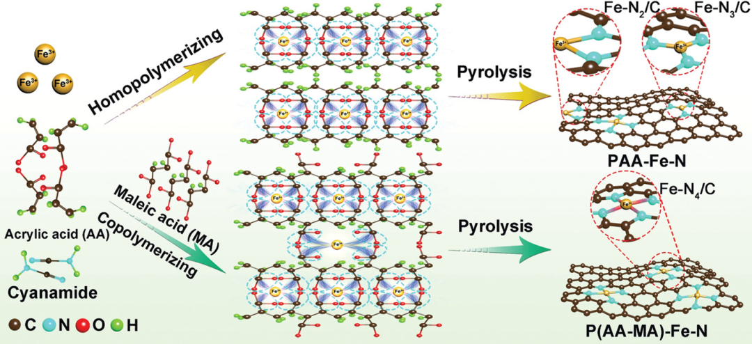 图1. PAA-Fe-N和P(AA-MA)-Fe-N催化剂的制备