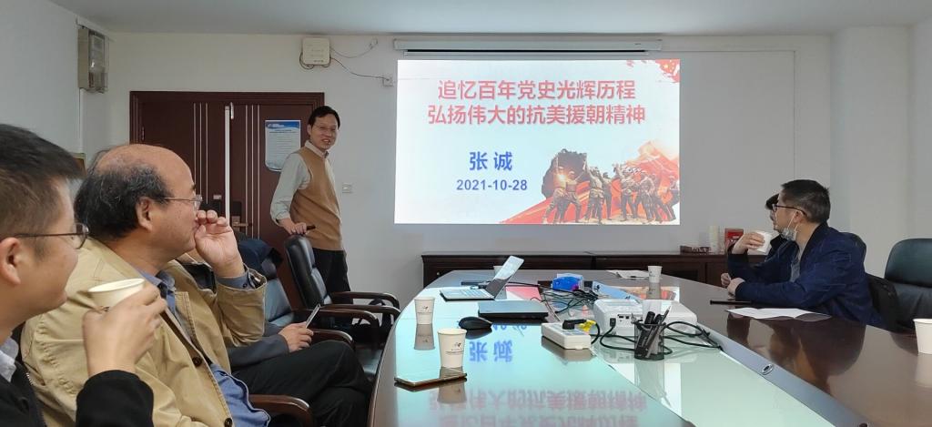 10月28日下午,新金属材料研究中心线下组织全体老师集体学习党史。本次微党课由中心张诚副主任详细讲述了“抗美援朝战争”前后,强调伟大精神的传承。