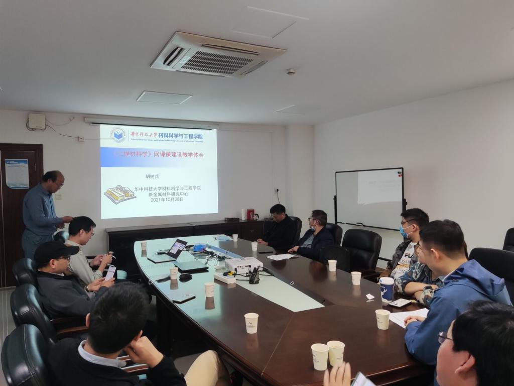 随后,为了响应党和国家“建设高质量教育体系”的号召,新金属材料中心在WISCO联合实验室412会议室还开展了关于网络课程建设的交流研讨,由《工程材料学》课程负责人胡树兵教授作报告分享经验。
