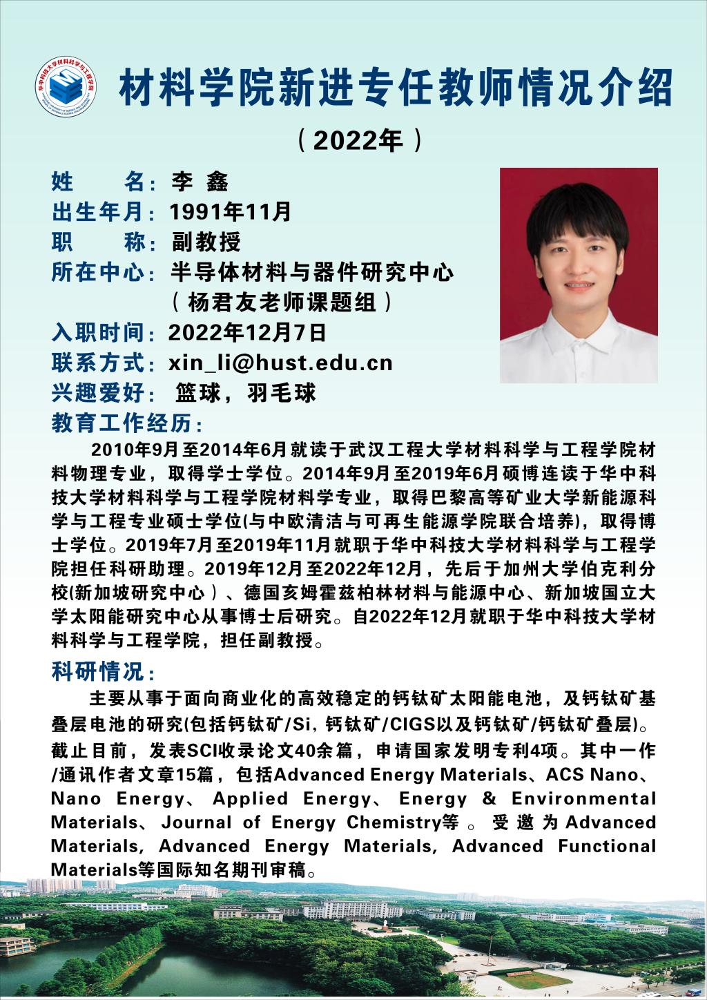 为增进大家对新进教师的了解,方便进一步沟通联系,现将魔性论坛 2022年新进教师的情况介绍海报展示如下: