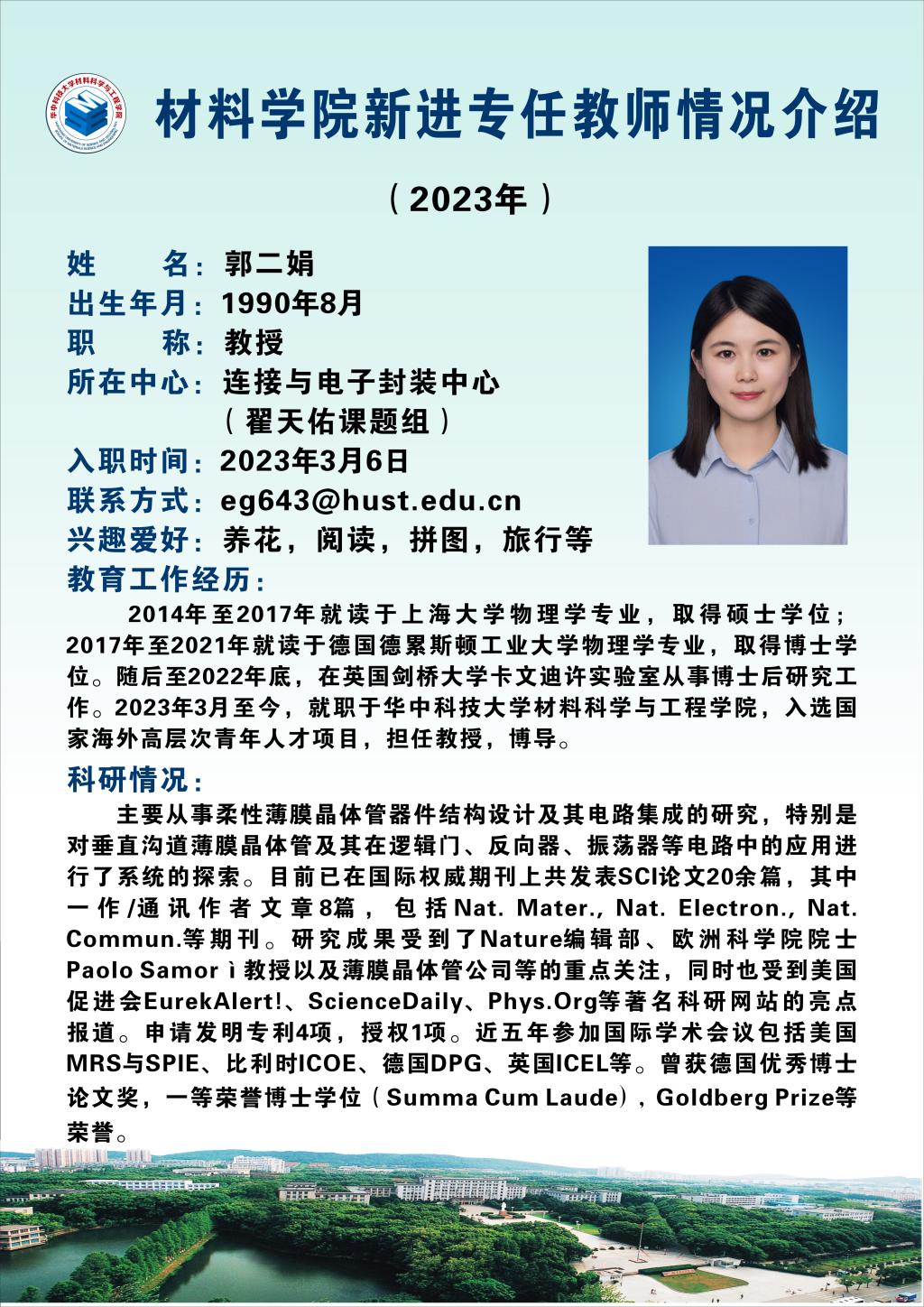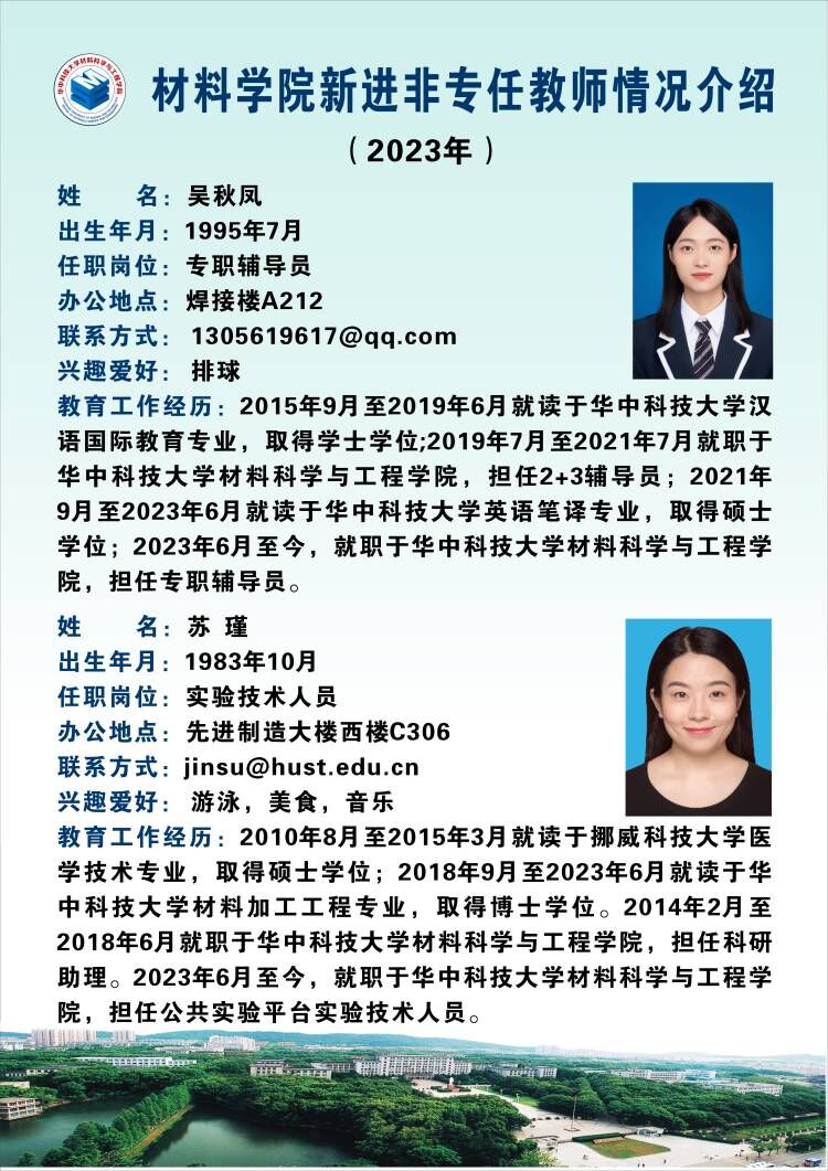 为增进大家对新进教师的了解,方便进一步沟通联系,更新魔性论坛 2023年新进教师的情况介绍如下: