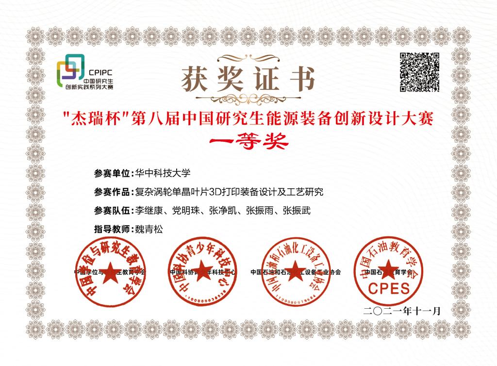 2021年第八届中国研究生能源装备创新设计大赛一等奖2项