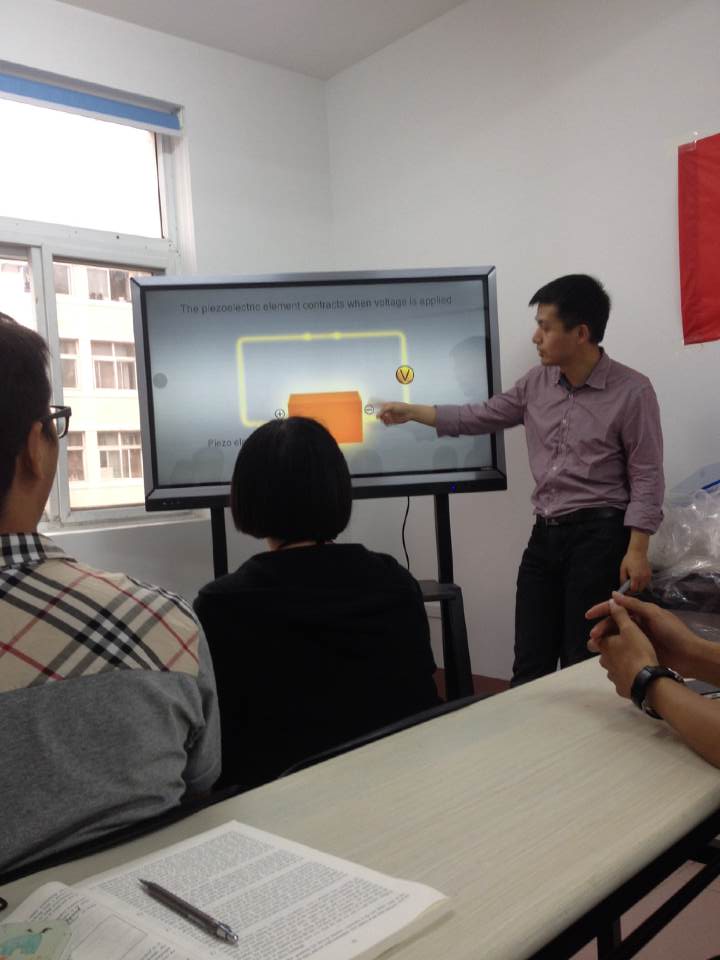 张海波副教授首先向我们介绍了各类先进陶瓷材料在各个领域中的应用,然后重点讲解了压电材料的发展及前途,他生动的讲解和幽默风趣的风格让在场的同学如沐春风。