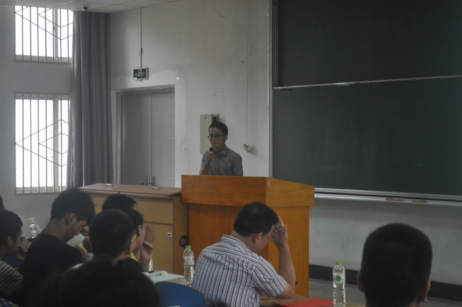 接下来是教师代表胡教授致辞。胡教授首先向同学们简介了自己是如何从一个农家子弟向着梦想不懈努力,最终成为一名学富五车的青年学者。同学们都露出了赞叹不已的表情。胡教授以此勉励同学们路漫漫其修远兮,吾将上下而求索。最后,胡教授表达了对全体新生的殷切希望:坚定信仰,思维凝练,言行儒雅,理性行事。