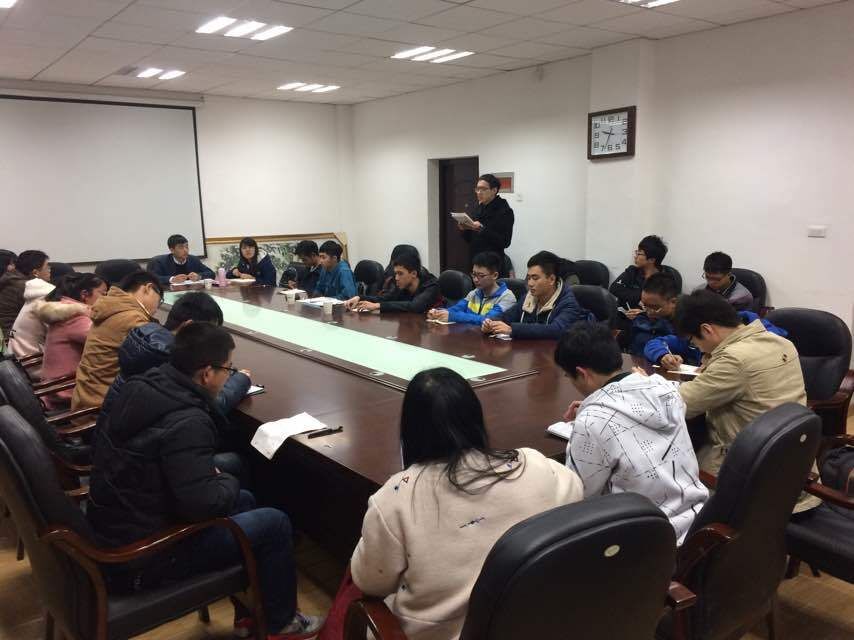 本科14级党支部在东三楼321举行了本学期第一次组织生活会。会议由支部书记高妞主持,会上朱玉晓等多名预备党员就"两学一做",新学期的规划等谈了自己的想法。作为支部的一份子,王黎辅导员详细的谈了我们为什么要学党章,作为学生党员我们可以做什么。并且希望大家在以后的学习生活中 要做到"慎独,慎欲,慎微,慎初"等,鼓励大家争做一名优秀的中共党员。