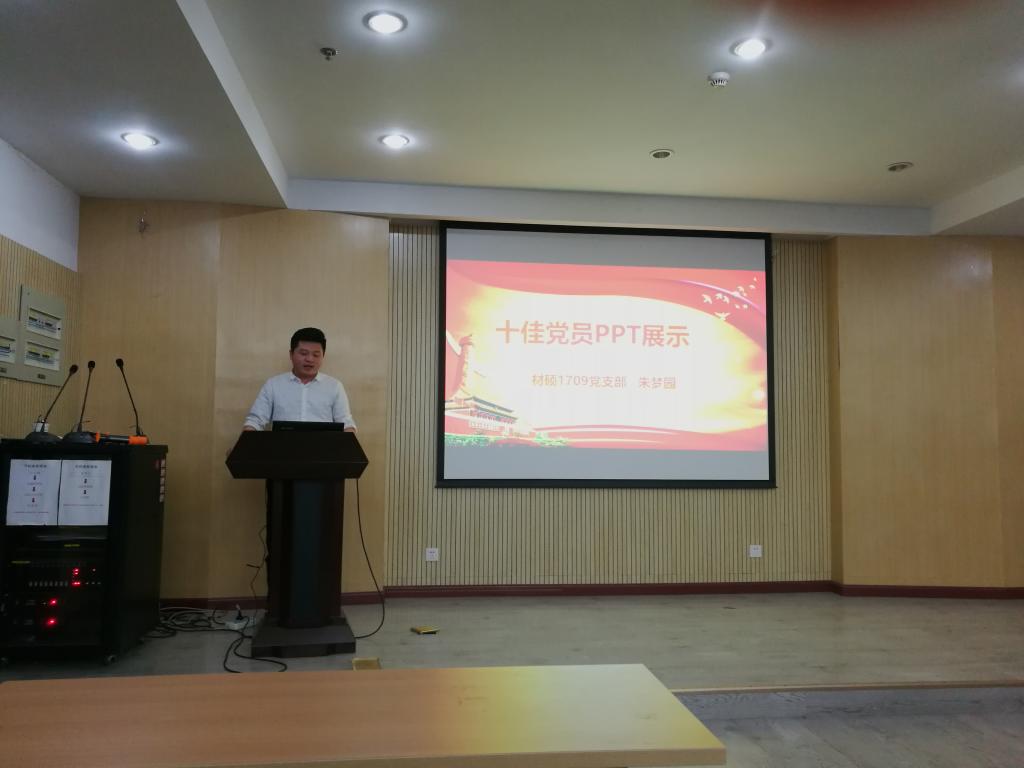 当晚,共有13名优秀研究生党员、9名优秀研究生党支书以及2个研究生党支部的优秀特色党日参评本次评选。参评优秀研究生党员的同学们从思想建设、学生工作、自我发展等方面来介绍自己,在展现自我的同时为党员们提供了学习交流的平台。参评优秀研究生党支书的同学们则就支部党建工作的情况依次进行展示,其中,材硕1601党支部书记牛其华同志重点分享了管理建设党支部的经验和方法,他认为作为一名党支部书记要在支部内发挥带头作用,这样才能让整个支部形成良好氛围。参评优秀特色党日的两个党支部代表分别展示了党支部开展的系列党日活动,以此调动研究生党员群体的积极性、主动性和创造性,扩大红色阵地的影响力。