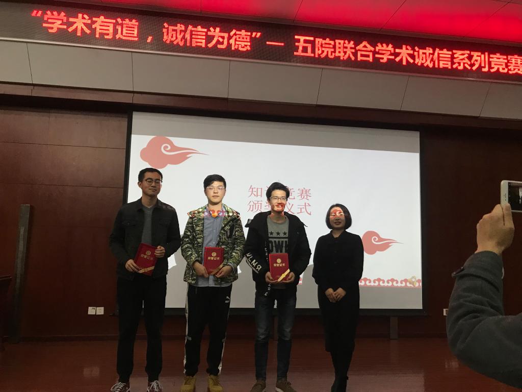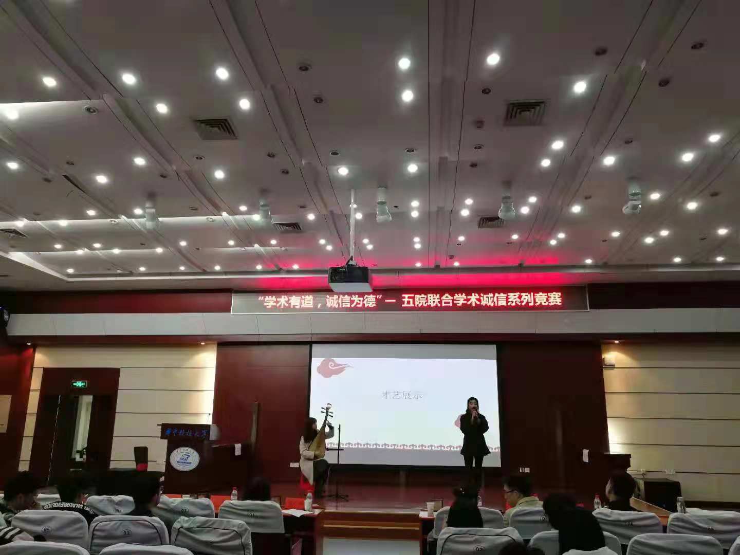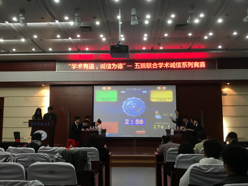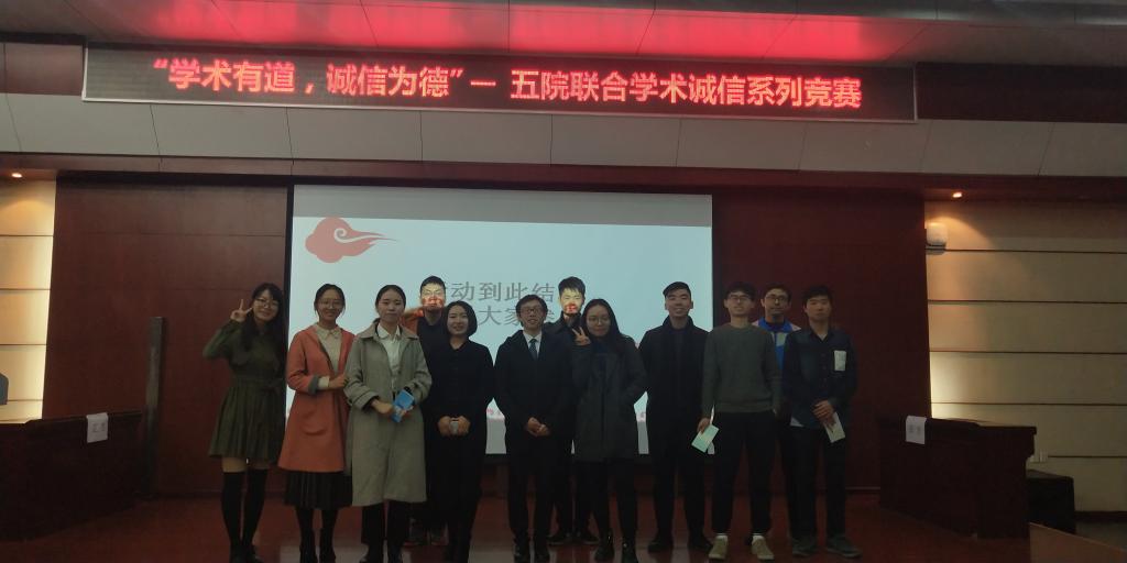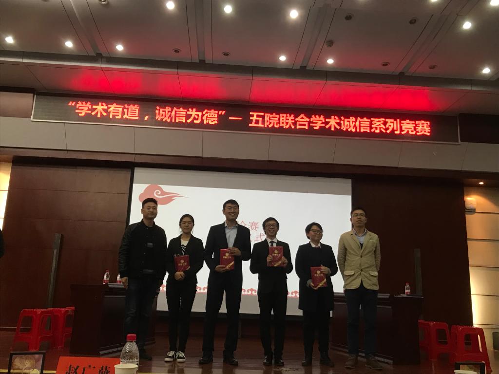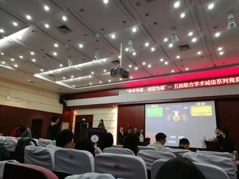 、法学院、经济学院、船舶与海洋工程学院、教育科学研究院五院于2018年11月28日晚19点在经济学院学术报告厅举行学术诚信辩论赛。我院研究生三好标兵、优秀学生代表陈安南博士担任本次竞赛评委。
