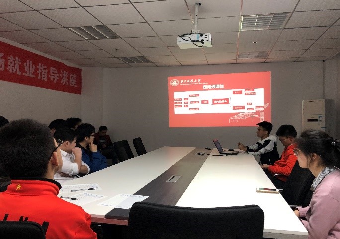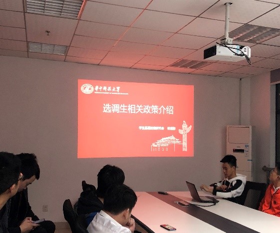 研究生工作组和研究生会于2019年11月8日在先进制造大楼西楼C412举办了选调生专场就业指导活动。校选调生发展协会成员林彦彬和蒋承钰等同学应邀参加本次活动。