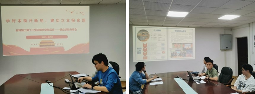 材料加工第十三党支部支委会积极谋划邀请三位毕业年级同志开展就业分享,第一位杨波同志就自己准备选调生考试,以及国企,宝武研究院等方面展开分享,杨波同志分享了自己备考过程,谈及里子和面子的关系,自己职业方向的选择等内容,鼓励支部成员能够将自己的职业规划融入到国家的发展中。第二位罗宜缘同志则分享了自己在面试大型私企如迈瑞医疗等公司过程中遇到的困难,强调了找工作要早做准备,多做准备。第三位姚俊卿同志则就自己在华为工作的实际情况进行分享,并向支部成员分享了自己返回魔性论坛