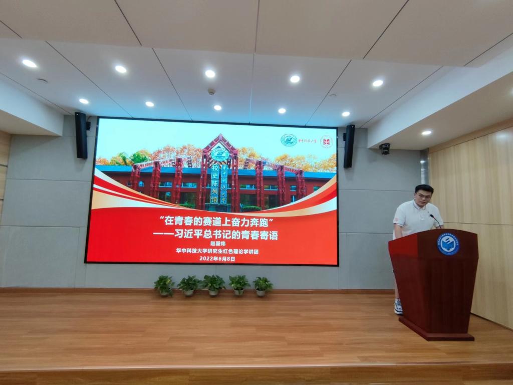 校研究生红色理论学讲团讲师赵毅炜作主题为《在青春的赛道上奋力奔跑——习近平总书记的青春寄语》微党课分享。赵毅炜讲师围绕习近平总书记的青春寄语,结合新时代华中大的青年榜样,从“用脚步丈量祖国大地、用眼睛发现中国精神、用耳朵倾听人民声音、用内心感应时代脉搏”四个方面,生动阐述了新时代青年应当如何在青春的赛道上奋力奔跑。