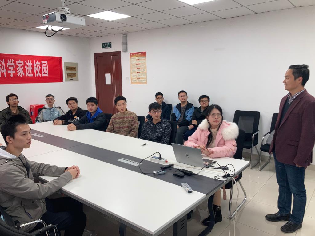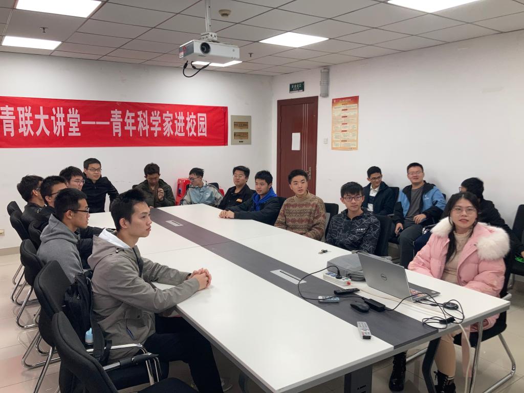 11月11日,由中华全国青年联合会发起、湖北省青年联合会主办,“青年科学家进校园”活动在我院先进制造大楼西楼C412举行,我院翟天佑教授以“立下报国志 百炼成精钢”为题,与我院第一批本硕博贯通班——材料本硕博2001班学生交流沟通。