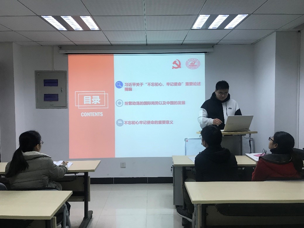 (通讯员 刘媛)2019年12月9日晚上七点,材料加工研究生第十五党支部在焊接楼304会议室开展“纷繁动荡的国际局势以及中国的发展”主题学习活动和预备党员接收会议。会议由党支书2018级硕士刘媛主持,新生党员2019级博士文晓琨主讲,全体党员和入党积极分子都参加本次会议。