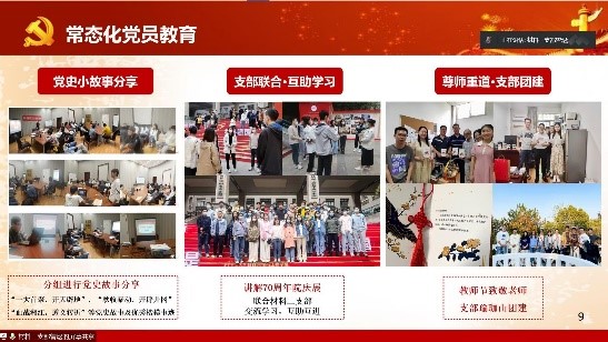 高质量发展;材料加工第十三党支部联合学院本科生党支部,研本共建,分享科研、就业心得;材料学第十党支部联合中南大学粉末冶金研究院党支部,党旗云相聚,共同话创新;材料加工第十一党支部与华工科技开展卓越工程师座谈交流会,予以求职和人生规划建议。