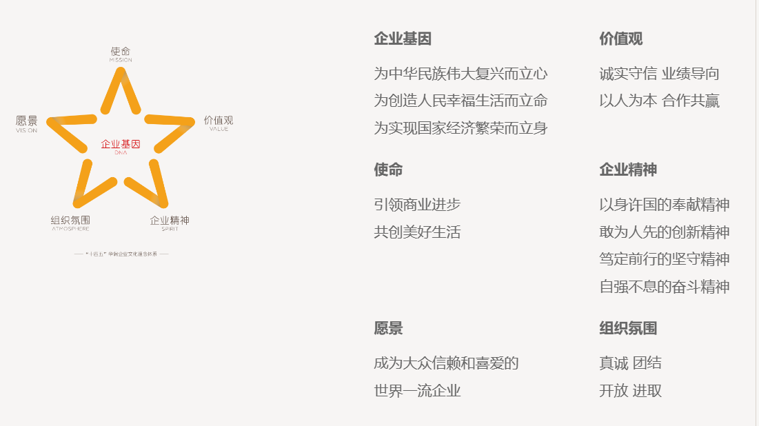 使命是企业存在的理由和根本目的,回答“我们为什么而存在?”,对其他文化元素起到引领性作用。