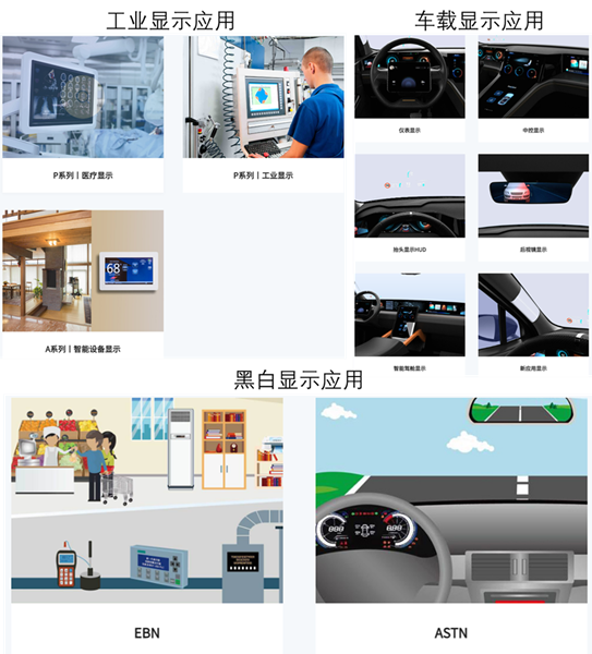 专业显示:车载显示应用、工业显示应用、黑白显示应用