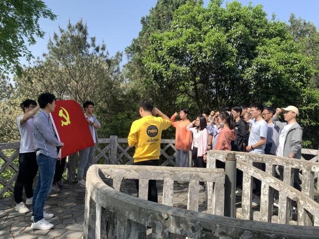 4月9日前往喻家山开展重温校史实践育人活动。国防材料研究生党支部王明梓同志对一些建筑进行解说,鼓励支部成员铭记学校栽培之恩,将感恩之心传承。同时重温入党誓词,意为让大家在不同的地方回顾自身的党员身份,进一步增强党员的党性观念,在学习校史的同时,不忘初心和使命。最后材料加工第十三党支部支部书记刘天琪同志就建校七十周年以来的建校历史进行主题回顾。回顾校史悟先辈之不易,知未来之可期,坚定科研报国,材料强国的信念。