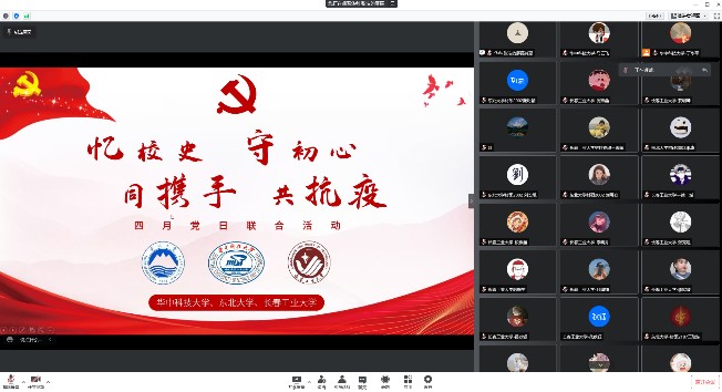 研究生第一党支部开展了“忆校史 守初心 同携手 共抗疫”联合主题党日活动,回顾母校悠远的发展历史,传承先辈的矢志报国伟大精神,加强兄弟院校之间的相互了解;同时在依旧严峻的疫情形势下,加强抗疫经验交流,共克时艰。魔性论坛