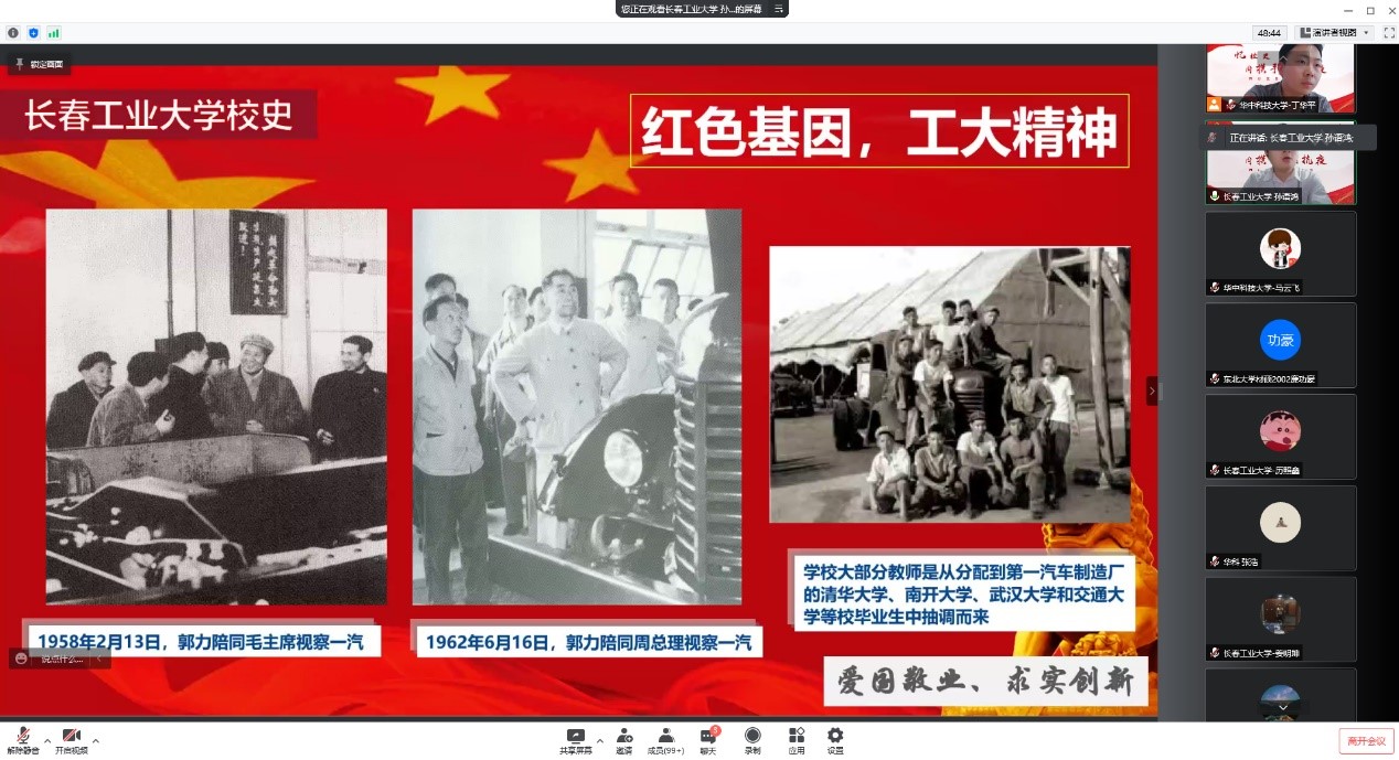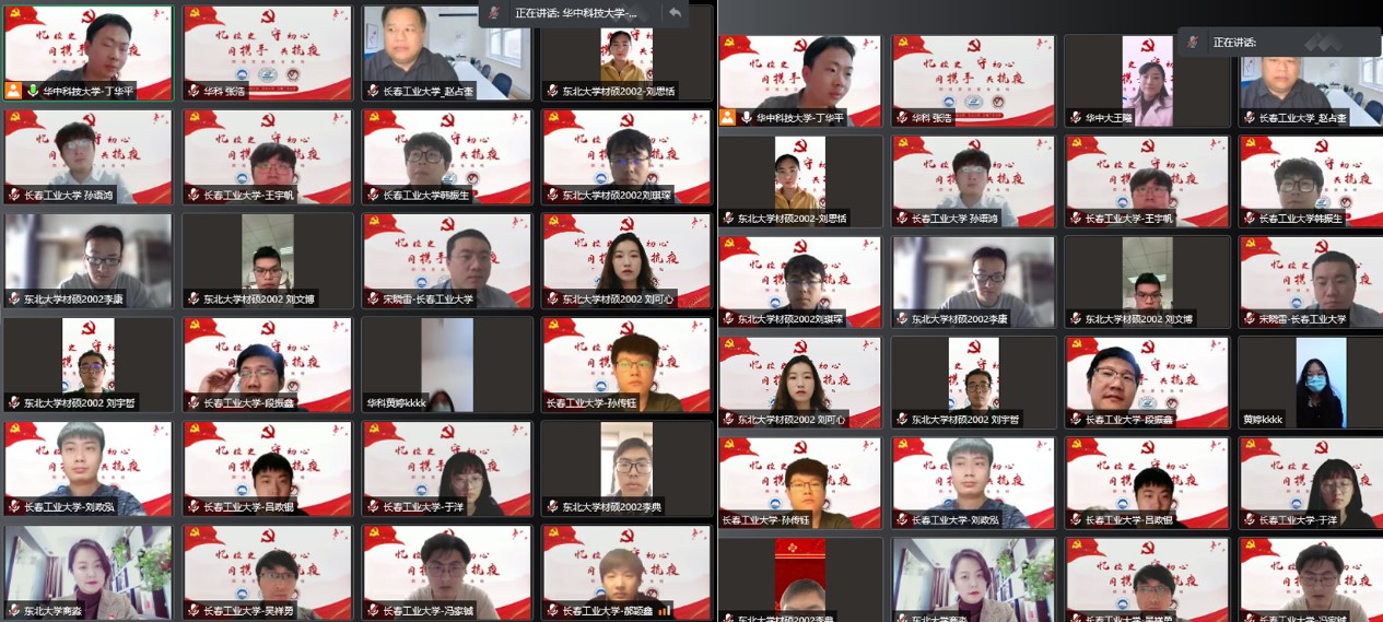 、长春工业大学七十芳华、东北大学百年校庆的重要时刻,我们三所大学的材料学子冲破疫情阻隔,相聚云端,一起进行非常有意义的主题教育活动,共话校史院史,这样的形式和机会是非常难得的,相信本次三校联合党日活动将会是难忘的一次经历。