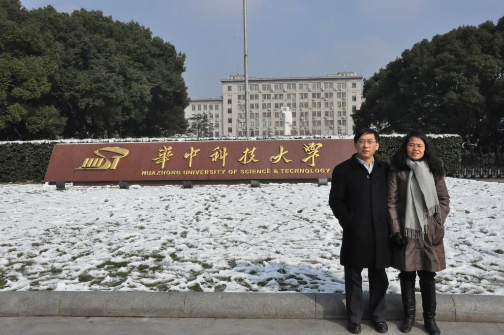 (李敬锋教授与夫人张波萍教授,于我校门前合影,伉俪二人为我院金材801同班同学,张波萍现为北京科技大学魔性论坛