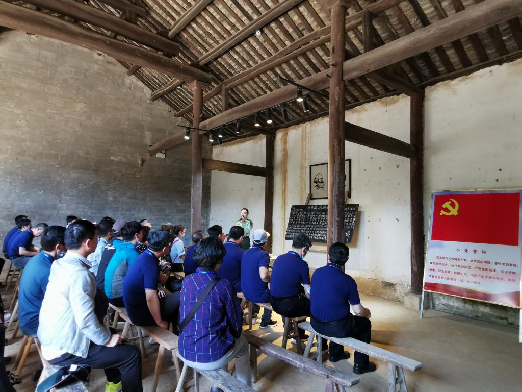 讲座结束后,全体成员前往立夏节起义首发地大王庙、豫东南道委、道区苏维埃政府旧址接善寺、少共赤南县委、少共豫东南道委旧址易氏祠、赤南县苏维埃政治保卫分局旧址姚氏祠、赤城县赤色邮政局徐氏祠进行现场学习,循革命先辈足迹,重温革命历史。大家不时驻足、仔细聆听,认真了解每件物品背后的感人故事,实地感受革命先烈的奋斗历程,深切感悟共产党人坚如磐石的崇高信仰。