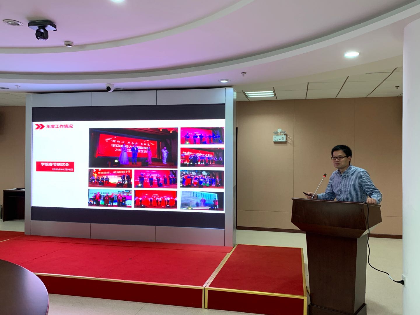 工会主席王新云做了学院工会工作报告,他介绍了学院工会一年来的工作情况以及取得的成绩,鼓励动员全院老师们积极参加学院工会活动,他表示学院工会接下来将进一步凝聚教职工力量,立足岗位,做好服务工作。