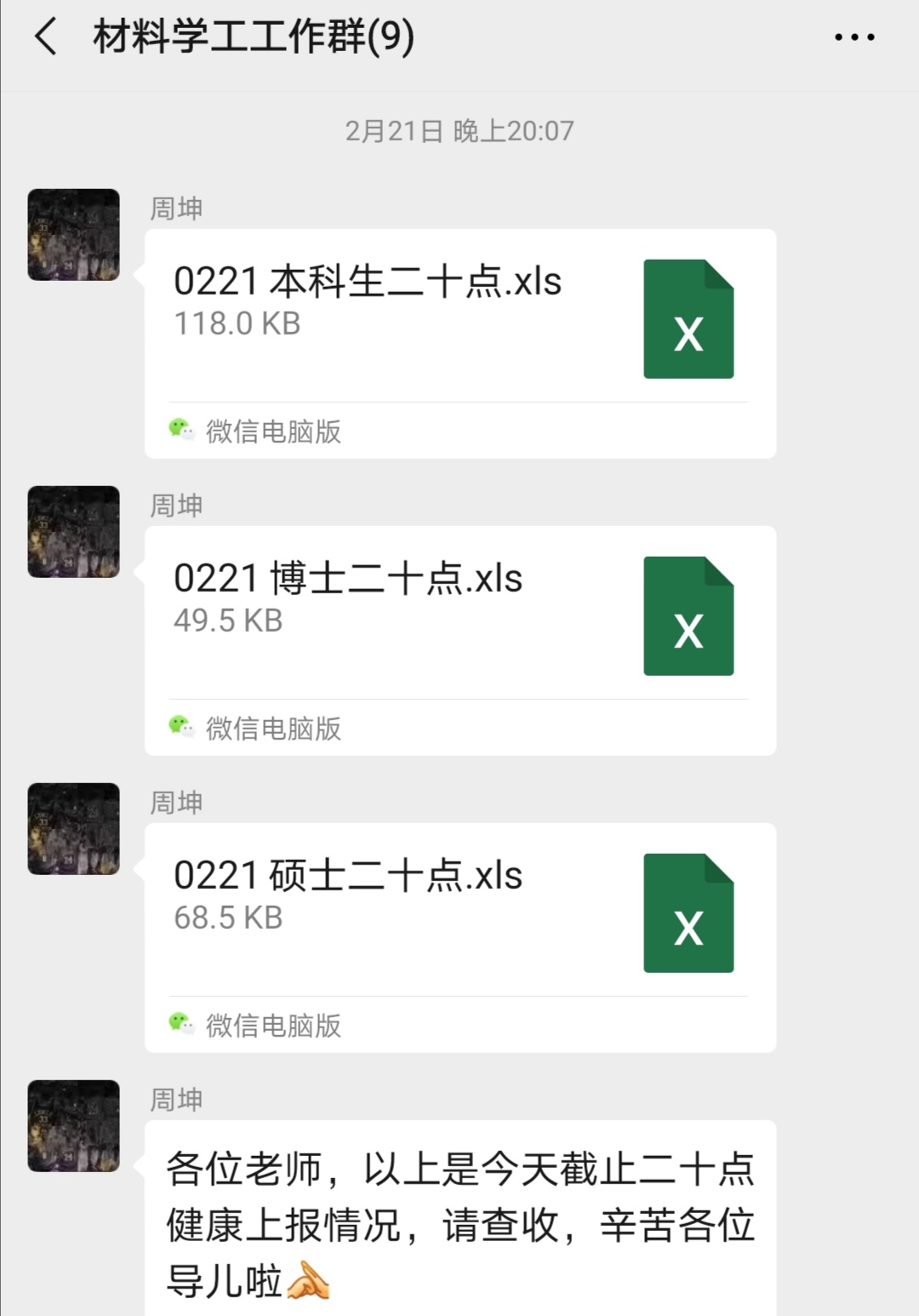 ——上午10点50分,学院党委书记李毅作出要求,每天上午11点,学院党委务必要对全院教师的健康情况掌握全覆盖。学院教工支部书记微信群消息不断:“连接与电子封装中心无异常报告”、“退休人员无异常情况”、“快速制造中心一切正常”......