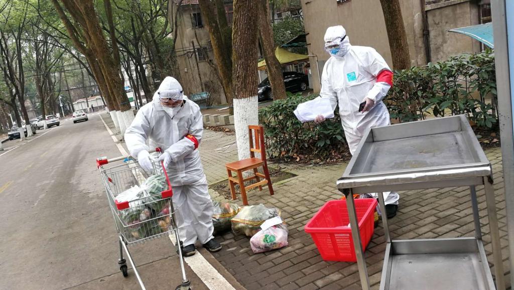——上午11点,党员肖建中来到退休老师家门外,将一袋药品放在门口后离开。此时,袁新华也顺利将蔬菜等生活物资送抵崔崑老师家门外。巴基斯坦专家及家人因疫情滞留武汉,在生活必需品缺乏的情况下,贾礼超老师为他们送去了米、油、菜,杨翔为他们购买体温计,协助他们做好健康监测。