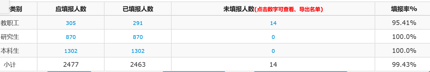 在本科生中进一步发挥辅导员-班长-寝室长-学生四级网格化管理工作体系作用,研究生党支部利用责任田工作机制组织研究生党员每日定点联系对应研究生同学。每天晚上八点,辅导员老师们对未上报健康情况的学生通过QQ、微信、电话等多种方式进行一对一联系,询问学生身体情况,关心学生心理健康。近日,学院学生健康上报率达到100%,做到全覆盖、无遗漏。