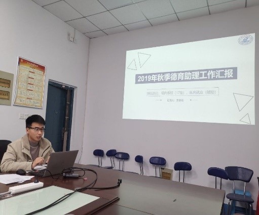 会议开始,王曦首先从学院研究生党建、资助和横向带班三个方面总结了本学期以来研究生德育助理工作,并强调了汇报注意事项,要求大家要严格按照汇报流程认真严肃地完成本次汇报。随后,各位德育助理就本学期实际工作情况进行了逐一汇报。
