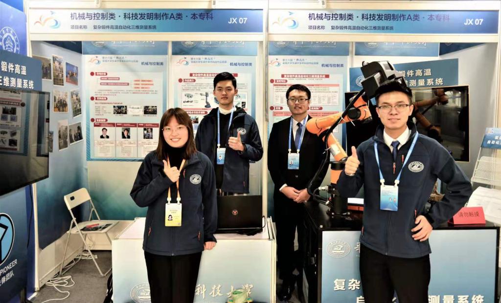 项目负责人张攀同学大学二年级在企业实习时,了解到锻造生产中缺乏实时测量的企业痛点和需求,返校后,在学院老师指导和大力支持下,他和团队同学经过两年多的努力,终于攻破各类技术难题,研制出复杂锻件高温自动化三维测量系统,实现了1000度高温锻件表面三维尺寸的全测全检,有效提升了产品精度和生产线的智能化水平。这项技术也得到多名中国工程院院士的肯定和推荐,受到应用企业的一致认可。