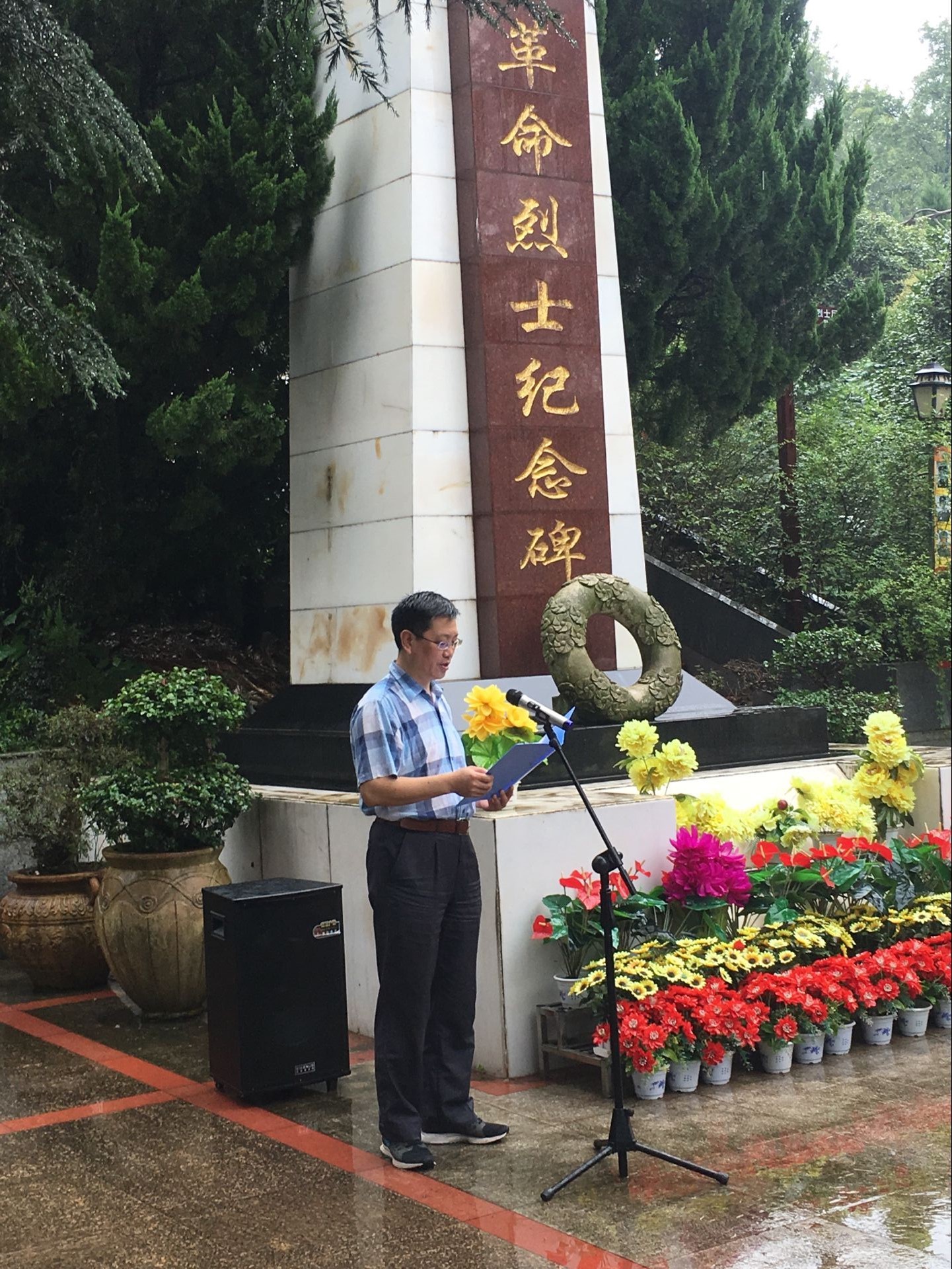 随后是学生代表敬献花圈并讲述烈士事迹,大家都听的很认真,仿佛自己也回到了那个枪林弹雨、满腔豪情的时期。讲述完毕后,李婷辅导员领誓,到场的全体预备党员以及党员庄严宣誓。宣誓结束后自由参观,大家分散开来去给烈士献花。