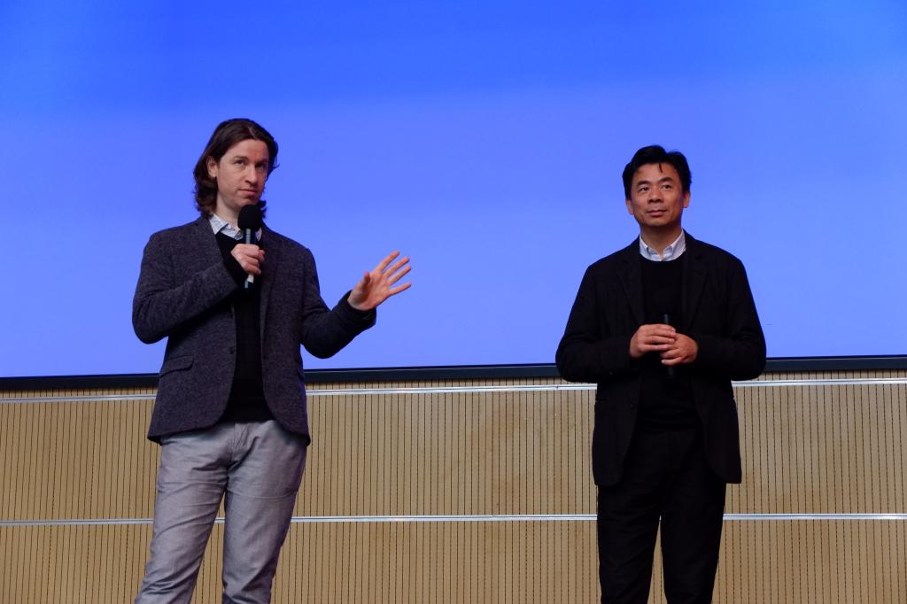 共同举办的艺术教育讲座在机械学院报告厅进行。本次讲座邀请到了美国著名指挥家、单簧管演奏家巴纳比·帕尔莫先生向同学们介绍古典交响乐,同时现场也邀请到了武汉青年交响乐团运营总监李云中老师进行现场翻译。