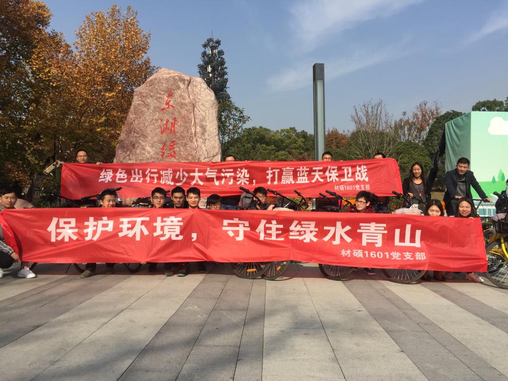 硕士1601党支部全体党员赴武汉东湖绿道骑行并进行生态环境考察。本次活动分为参观绿道骑行,新党章知识问答和重温入党誓词三个部分。