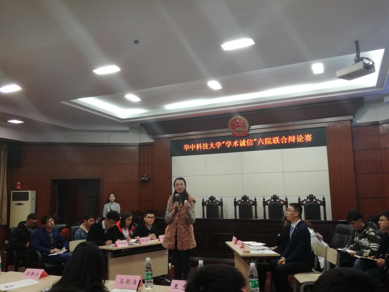 、法学院、国家光电实验室、外国语学院、能源与动力工程学院和化学与化工学院六院于11月29日晚19:00在东六楼二楼模拟法庭联合举办学术诚信辩论赛。