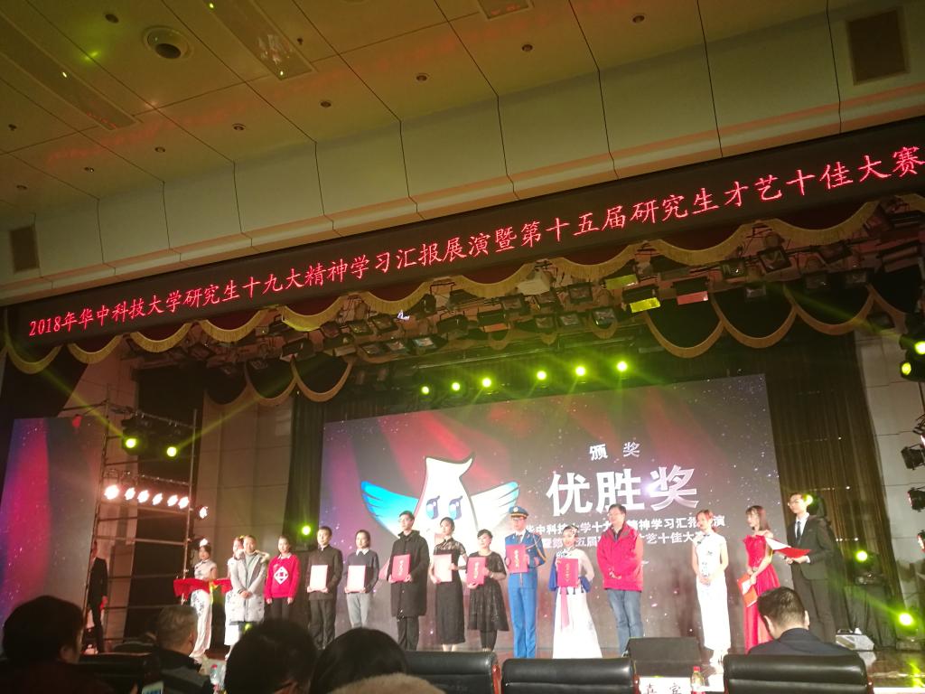 研究生十九大精神学习汇报展演暨第十五届研究生才艺十佳大赛”决赛中分别以第二名和第九名的好成绩斩获研究生才艺十佳的好成绩。