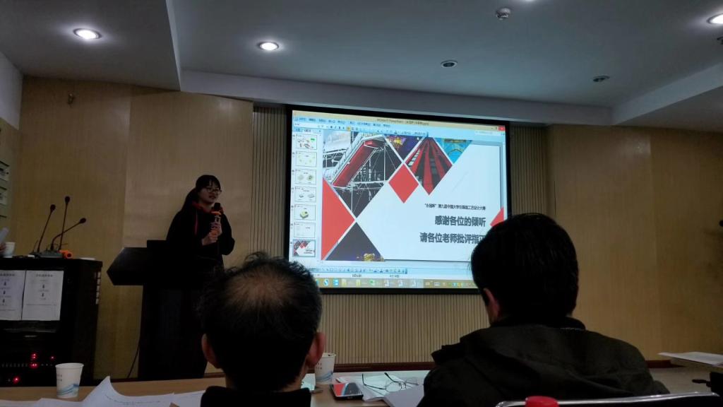 大赛分为队伍作品展示和评委提问两个环节,18支参赛队伍依次进行答辩,展示自己小组的设计方案。答辩主要考察各队设计方案的工艺合理性、可行性、创新性、工艺设计文件及说明书的编写质量。评委老师们一一指出他们的问题,或一针见血,或循循善诱,给予学生充分的指导。