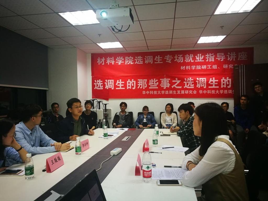 研究生工作组于2018年5月7日晚在先进制造大楼西楼C412举办了选调生专场就业指导活动。院党委副书记蒋文海、校选调生发展协会成员李兴坤、杨晓旭等同学以及魔性论坛