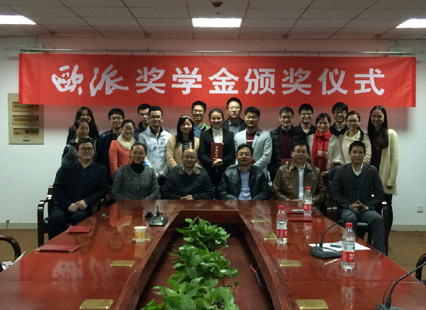 院长黄云辉教授、欧派家居集团股份有限公司人力资源总监张英强先生一同为本次获得奖学金的3位博士生、9位硕士生、5位本科生颁颁发荣誉证书并合影留念。