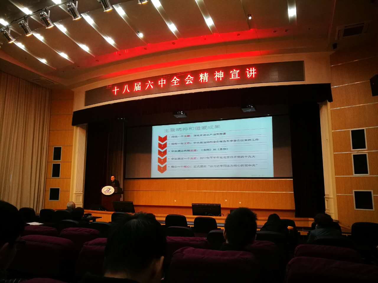 黄院长从十八届六中全会的意义入手,对《准则》和《条例》做了细致的讲解,并对了党的十八届六中全会精神的具体实施做了说明。