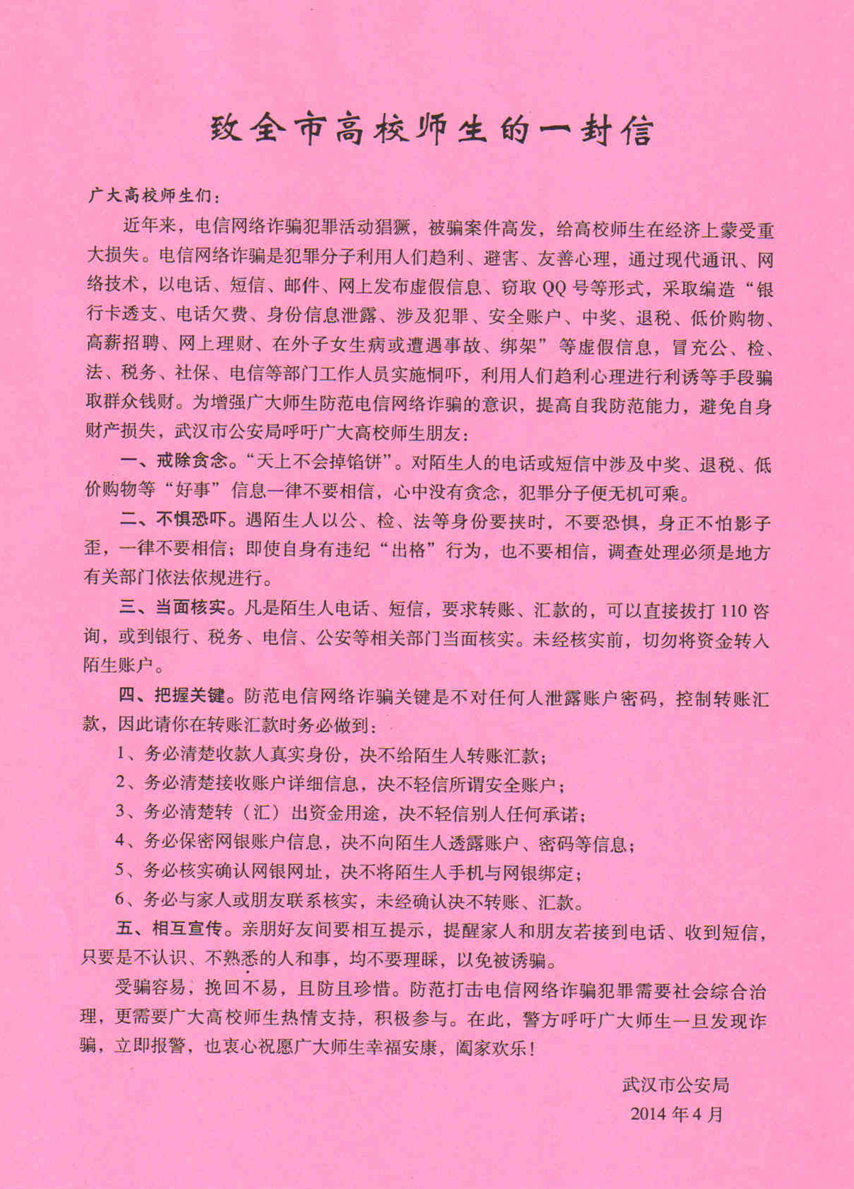 最后他重点强调大学生要提高警惕,加强防盗防骗意识,遇到困难及时拨打喻家山派出所电话87450110.他希望大家在完成学业的同时,不忘人身安全与财产安全。