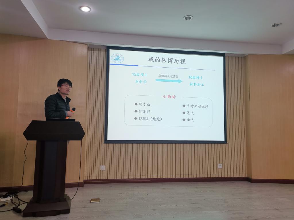 李鑫博士主要分享他在2014年时对“是否转博”这个问题的思考以及转博后的科研经历和收获。他的发言真挚诚恳,给参会师生提供了很多宝贵的建议,他所取得的学术成果以及健康生活、快乐科研的人生态度也做出了很好的表率。