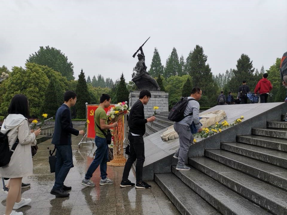 组织43名本科生、研究生党员前往红安县黄麻起义和鄂豫皖苏区革命烈士陵园,开展“奋斗中的青春之追忆先烈”特色党日活动,缅怀革命先烈,传承红色基因,并进行党员宣誓活动。