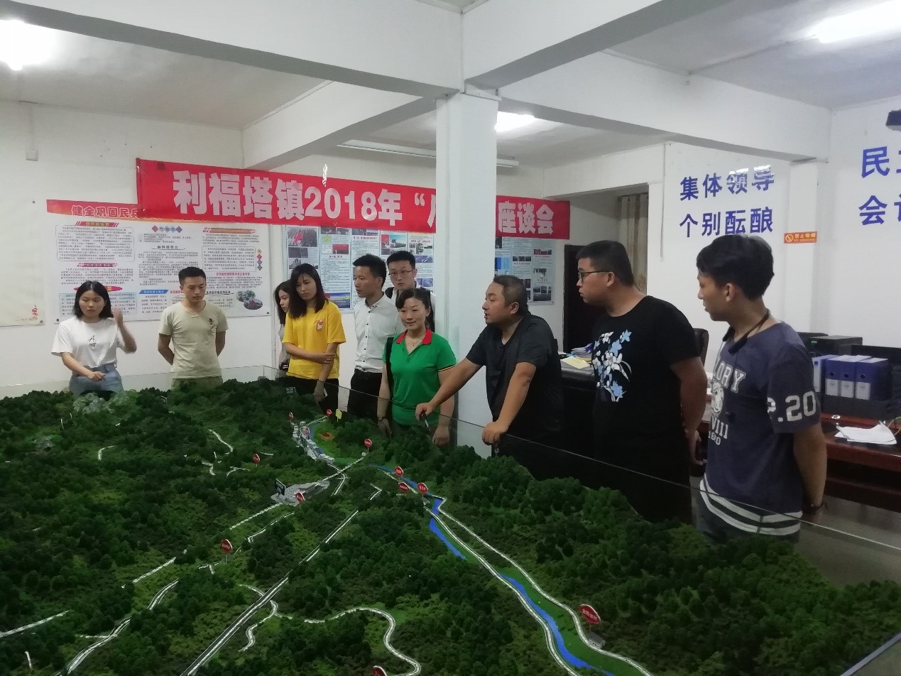 在湖南桑植县利福塔镇,镇长王文科代表领导班子对实践队员的到来表示热烈欢迎,并与队员们进行交流。王文科简要介绍了利福塔镇整体情况以及在精准扶贫、改善交通、生态治理等方面的工作发展。2017年湖南选调生、优秀校友李鹏飞和实践队员们交流了作为选调生两年来在基层的所思所感。当实践队员们了解到李鹏飞在艰苦的基层工作条件下,主动在脱贫攻坚、征地拆迁等不同工作中磨练自己,努力克服每个岗位中的困难时,大家都深深体会到作为青年,应该积极发挥主观能动性,吃苦耐劳,努力在基层中沉淀积累,在基层实践中成长成才。