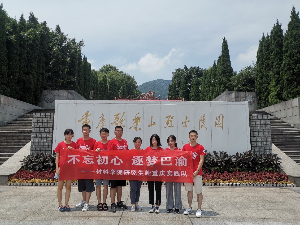 8月4日,实践队在中华人民共和国成立七十周年来临之际,来到重庆市红岩魂广场开展缅怀红岩革命先烈活动。在歌乐山烈士陵园纪念碑前,全体师生整齐列队,怀着崇敬的心情向烈士默哀三鞠躬,全体党员在纪念碑下和党旗前,郑重举起右拳,神情庄重,重温入党誓词。王曦老师带领实践队员们参观了白公馆、渣滓洞,进行了红岩精神微党课学习,观看了根据《红岩》创作的电影《烈火中永生》,革命先辈的英勇事迹引起了大家的共鸣,实践队员们纷纷表示要传承发扬红岩革命精神,坚定理想信念,以青春活力和满腔热血为新时代的中华民族伟大复兴奋勇前进。