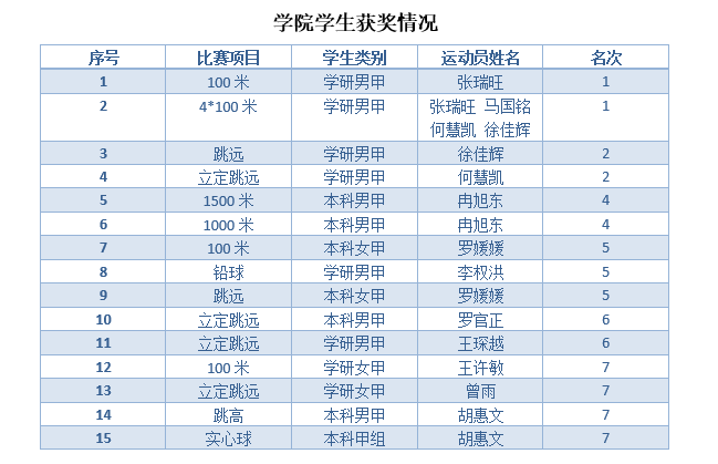 据悉,本次校运动会我院本科生共报名参赛82人,其中田径项目26项,趣味项目4项;研究生共报名参赛29人,其中田径项目12项,趣味项目2项;教职工共报名参赛23人,其中田径项目11项,趣味项目9项。