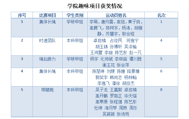 开幕式结束后,比赛项目正式开始。材料师生在各项比赛项目中展示风采。以下是我院师生在各项比赛项目中取得的成绩汇总: