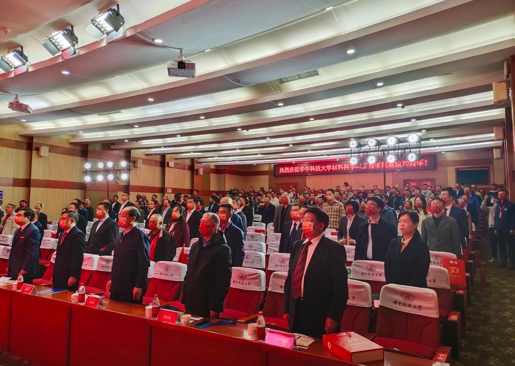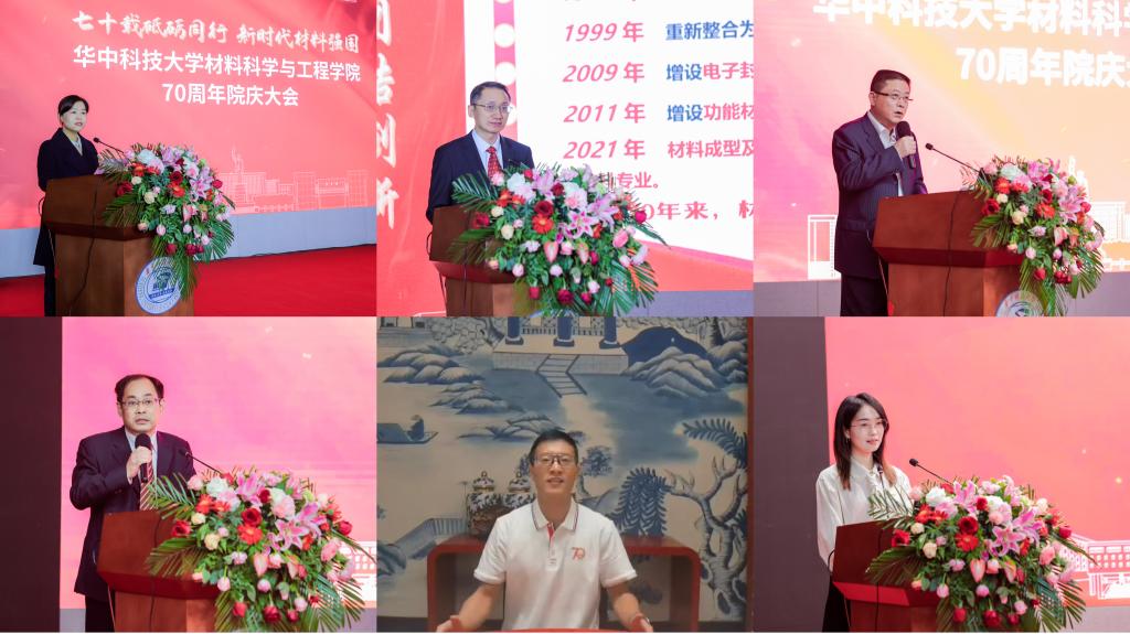 建院70周年院庆大会线上线下同步举行。校党委副书记、纪委书记徐业勤,中国科学院丁汉院士、张清杰院士、陈光院士,武汉市副市长杨泽发院友,武汉市原人大常委会副主任李强院友,三峡大学党委书记何伟军院友,学院全体党政班子成员、工会主席、老领导,学院师生代表、退休教师代表、校友代表等出席大会。