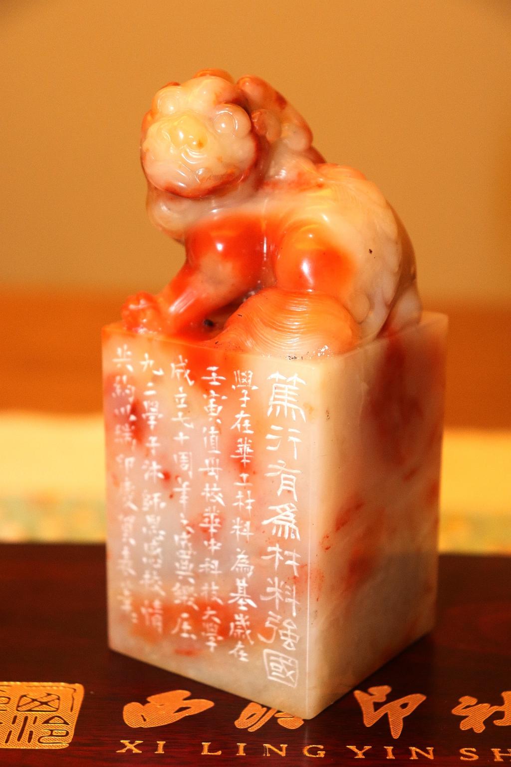 锻压92级全体同学更为学院捐赠70周年院庆专属印章,将“笃行有为 材料强国”的院训镌刻于上,并附贺文: